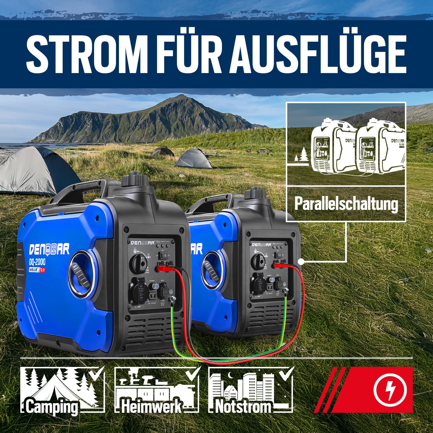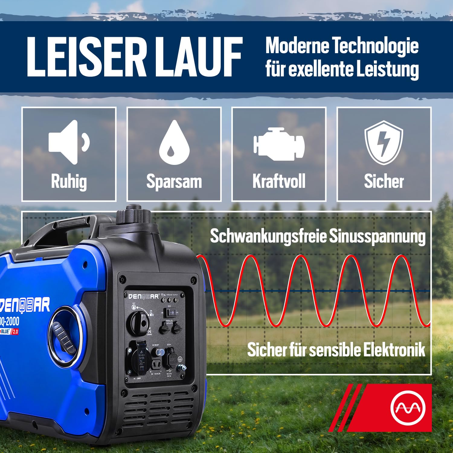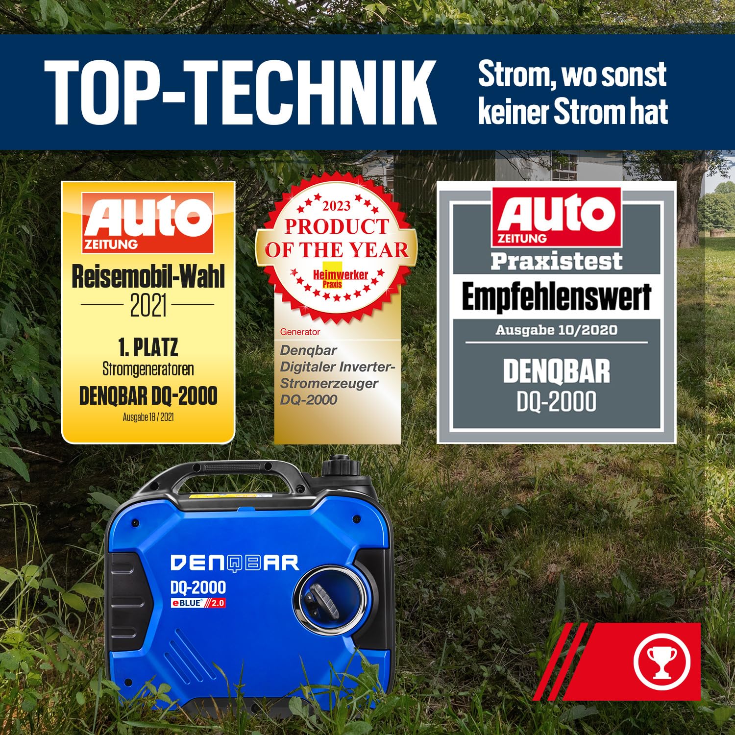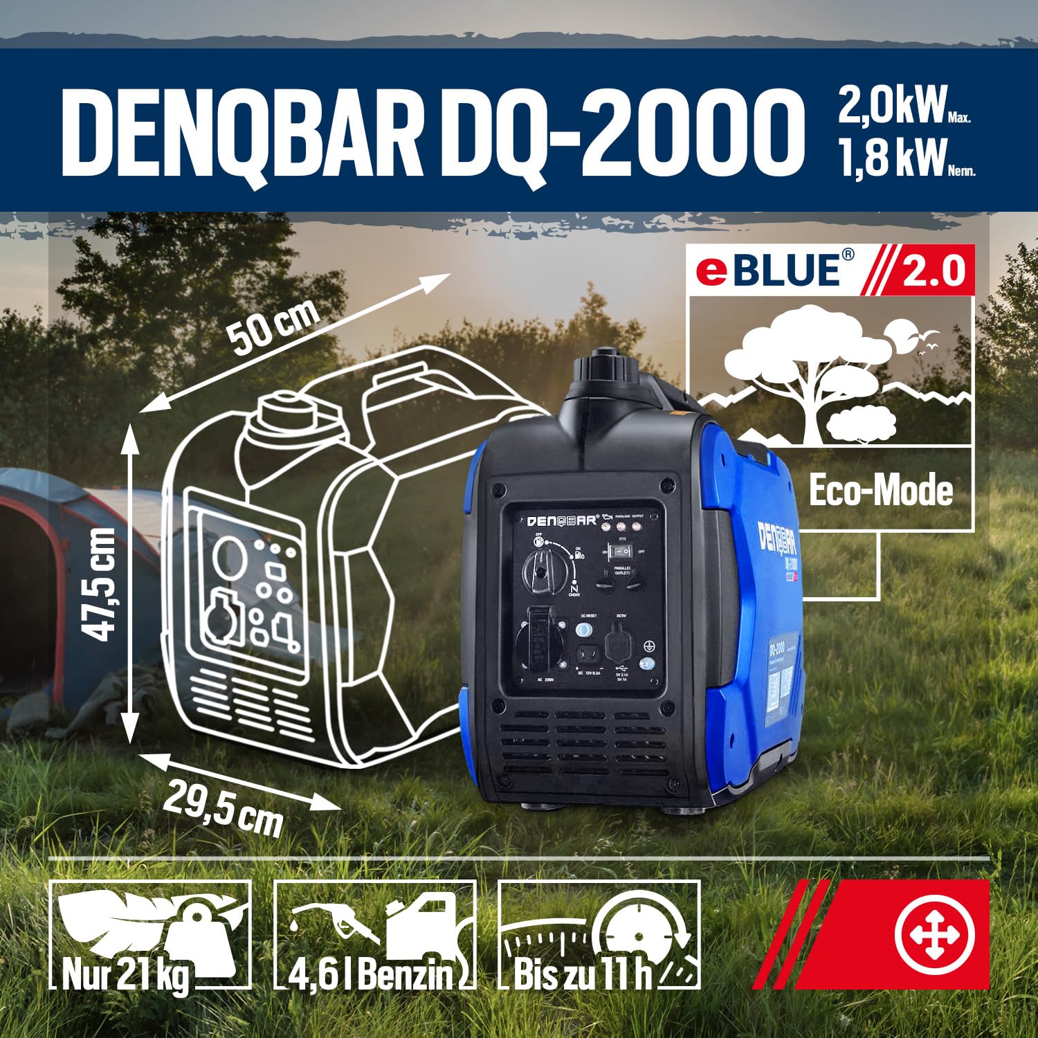 DENQBAR Inverter Stromgenerator DQ-2000 2000W Benzin Stromerzeuger mit 230V, USB Fast-Load, Superleise, 4-Takt Motor, tragbar - Für Camping, Outdoor, Baustelle, Reise, Wohnmobil und Notstromaggregat